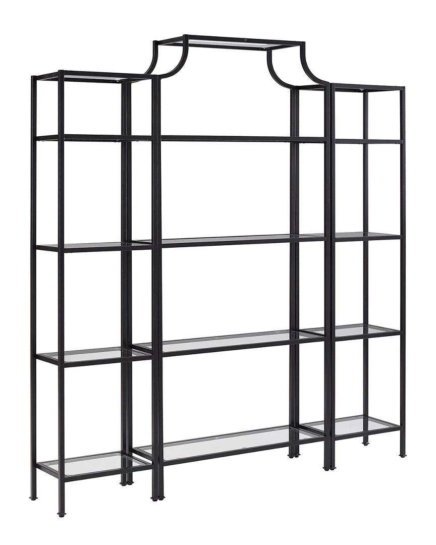 - Stylish and modern, the Aimee Etagere Set is an eye-catching addition to any home. A sturdy steel frame with pagoda-styling creates visual interest that can be paired with a variety of decor. The Aimee Etageres open, tempered glass shelves are perfect for display and organization without overwhelming the room.