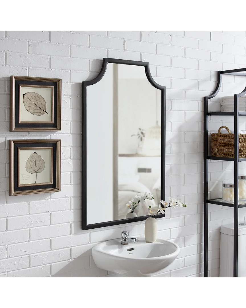 - Design details: Stylish and modern, the Aimee Wall Mirror is an eye-catching addition to any home. A sturdy steel frame with pagoda-styling creates visual interest that can be paired with a variety of decor. Simple, yet fashionable, the Aimee Wall Mirror can be used as an accent or bathroom mirror.