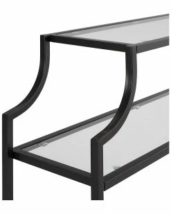 - Design details: Stylish and modern, the Aimee Console Table is an eye-catching addition to any home. A sturdy steel frame with pagoda-styling creates visual interest that can be paired with a variety of decor. The Aimee Console Tables open, tempered glass shelves are perfect for displaying mementos without overwhelming the room. ; Art Deco inspired design; Oil-rubbed bronze finish; Frame is constructed of sturdy steel; Two tempered glass shelves; Pagoda-styled frame; Upscale display and storage for any room; Pairs well with industrial, rustic, modern farmhouse, and traditional decors