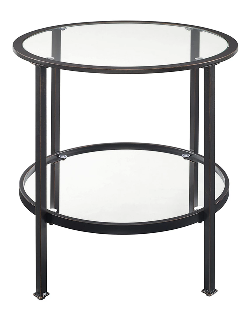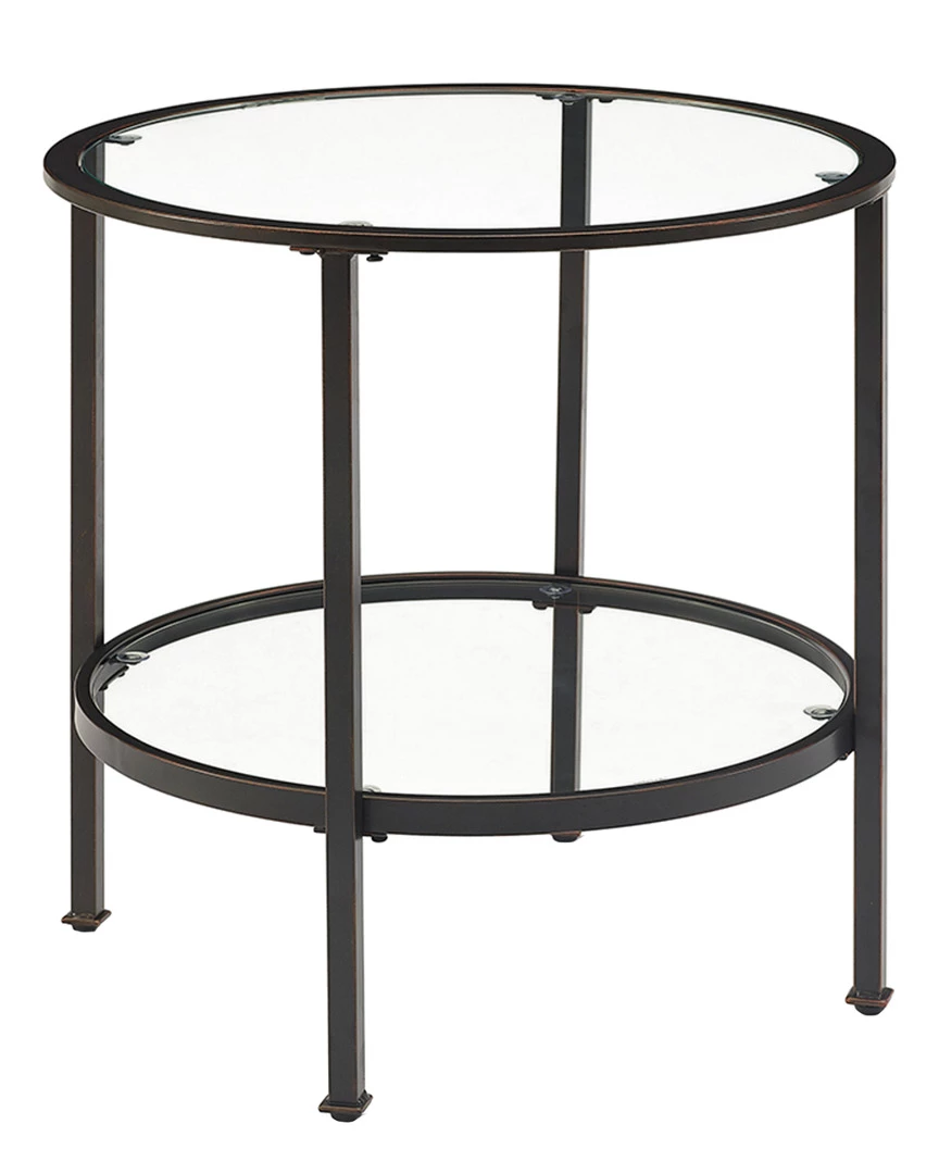 - Design details: The Aimee End Table brings a stylish and modern edge to any home. With a sturdy yet sleek steel frame, this side table can be paired with a variety of decor without overwhelming the space. The Aimee End Tables tempered glass top and shelf create an inviting surface just right for your favorite beverage or a good book.