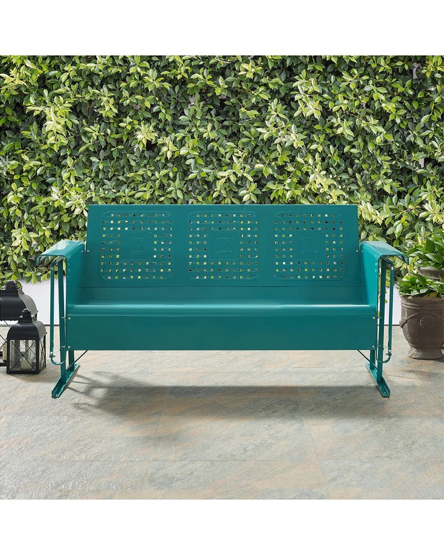 - Design details: Glide back into lazy summer afternoons with the Bates Sofa Glider from Crosley. Constructed from strong steel softly finished with a weather-resistant powder coating, this nostalgic summer staple is back again to provide rest and relaxation by the poolside or on the patio. Or, bring the iconic piece indoors to give the look of a perfect vintage fair find. Rock and sway with the smooth gliding mechanism and relax for summers to come.