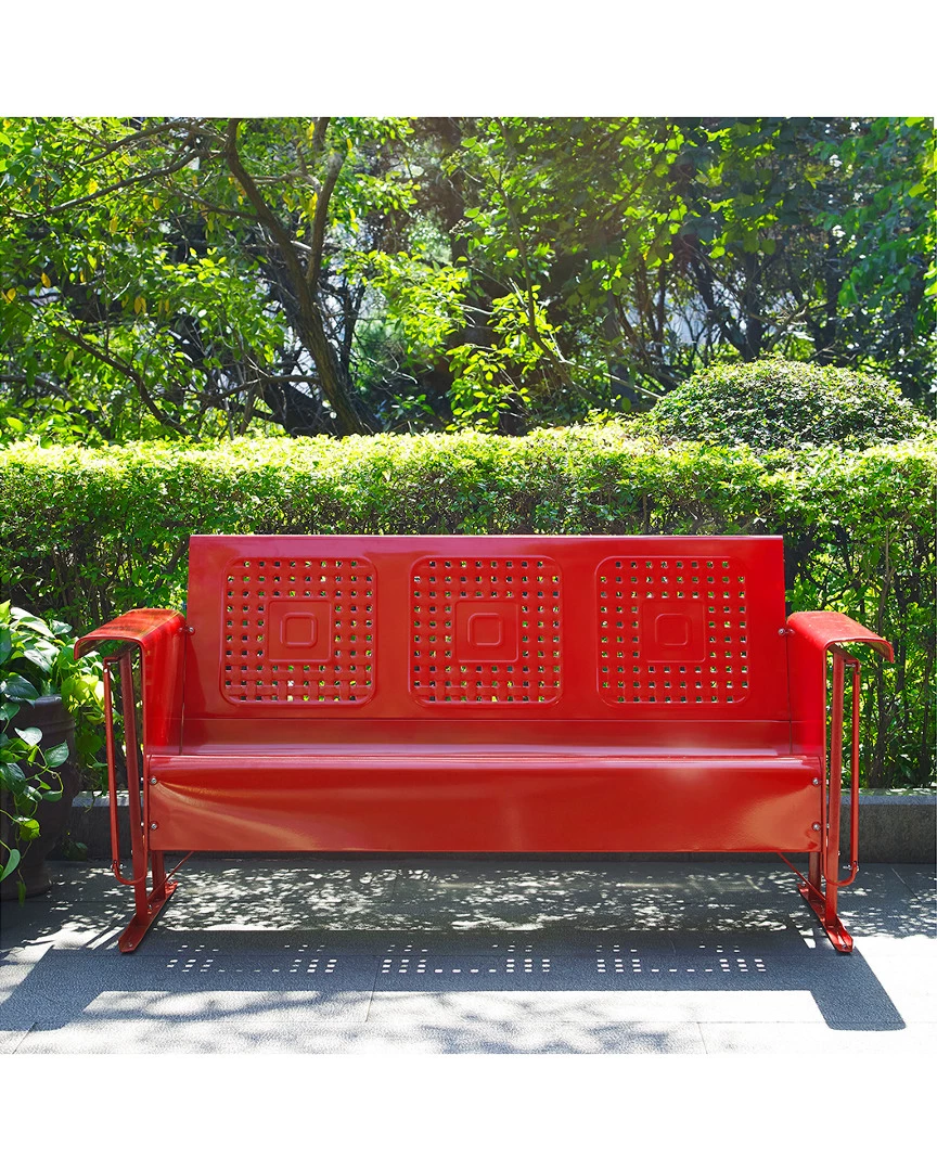 - Design details: Glide back into lazy summer afternoons with the Bates Sofa Glider from Crosley. Constructed from strong steel softly finished with a weather-resistant powder coating, this nostalgic summer staple is back again to provide rest and relaxation by the poolside or on the patio. Or, bring the iconic piece indoors to give the look of a perfect vintage fair find. Rock and sway with the smooth gliding mechanism and relax for summers to come.