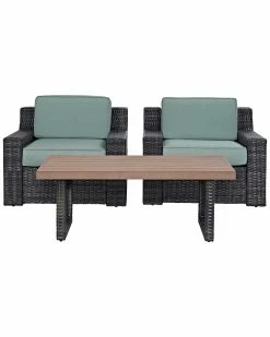 Crosley Beaufort 3pc Outdoor Wicker Chat Set Home Seating