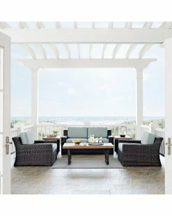 - Design details: Sit back and relax in our spacious Beaufort outdoor conversation set. This dependable, sophisticated seating collection features low-profile club styling with crisp lines and understated curves, resulting in a look that makes your outdoor area an instant oasis. Our easy-to-maintain dark brown synthetic wicker is water and UV resistant, and the solution-dyed polyester, Mist-colored cushions are fade resistant. Seating surfaces are generous in size, and feature resilient foam cushion inserts. The modern coffee table is distinguished by its angular base, and top that features all-weather faux wood planks with embossed grain details. With the Beaufort collection from Crosley Furniture, comfort lives outside.