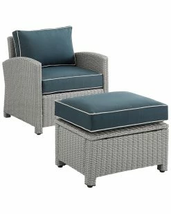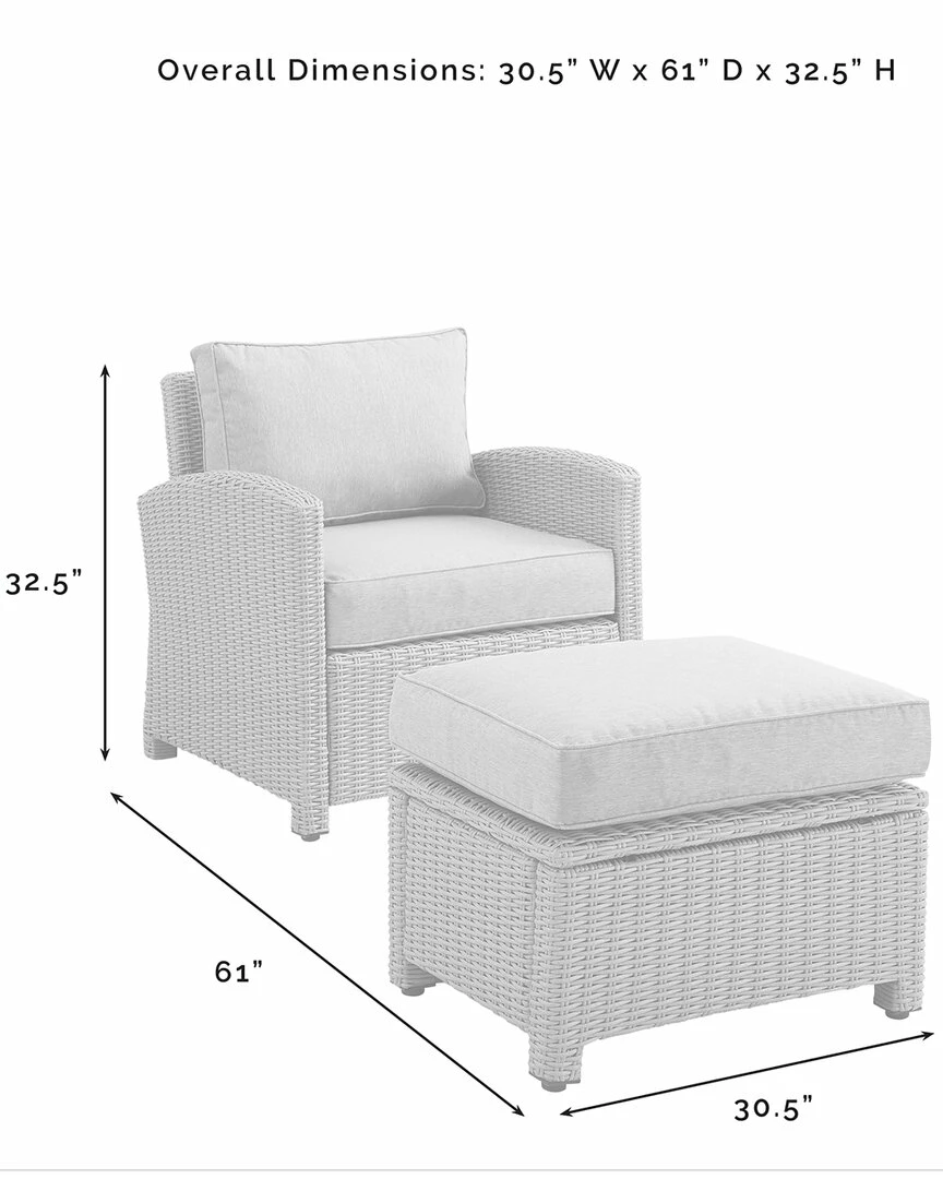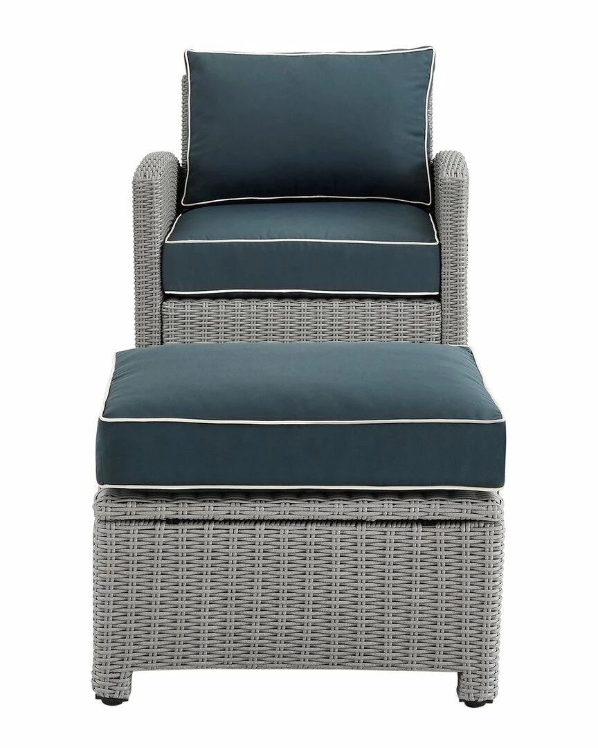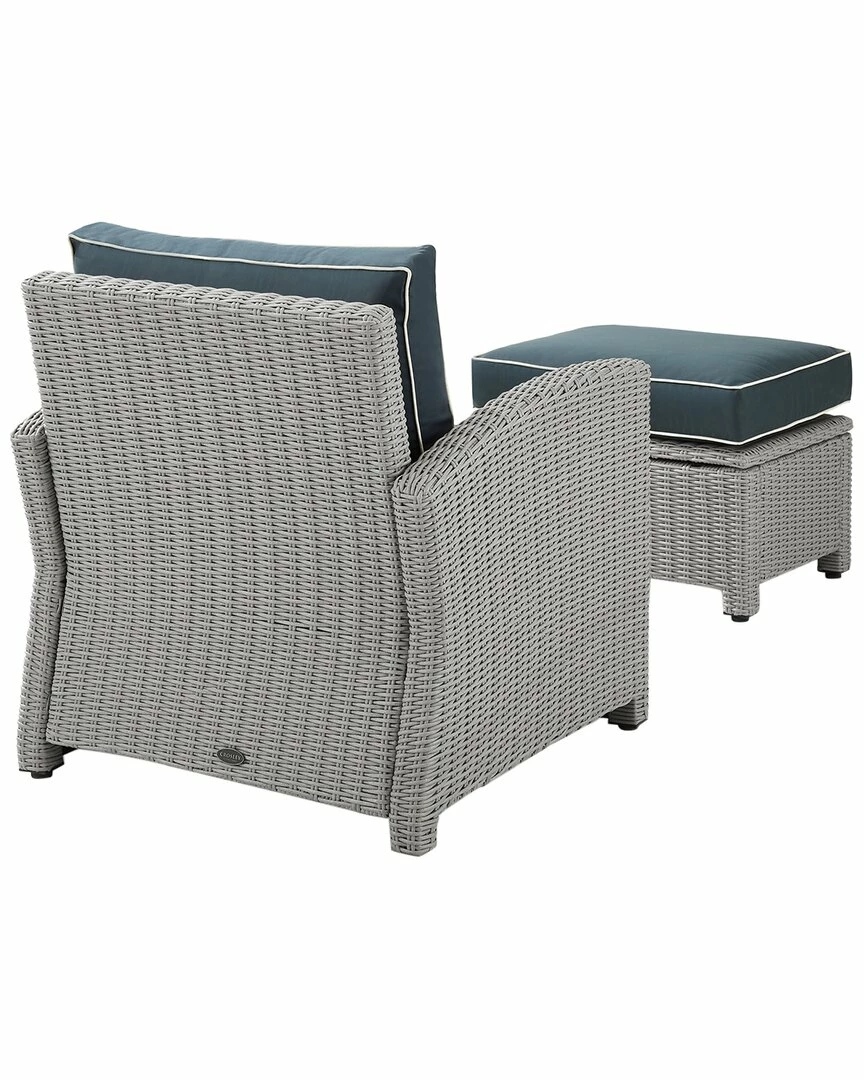 - Kick back and prop up your feet with the Bradenton 2pc Chair Set. Both the chair and ottoman have sturdy steel frames wrapped in beautiful all-weather wicker. Topped with moisture-resistant cushions, the set has a versatile modular design and comfortable deep seating. Great on its own or paired with the rest of the collection, the Bradenton Chair Set is a lovely addition to your outdoor retreat.