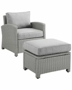 - Kick back and prop up your feet with the Bradenton 2pc Chair Set. Both the chair and ottoman have sturdy steel frames wrapped in beautiful all-weather wicker. Topped with moisture-resistant cushions, the set has a versatile modular design and comfortable deep seating. Great on its own or paired with the rest of the collection, the Bradenton Chair Set is a lovely addition to your outdoor retreat.