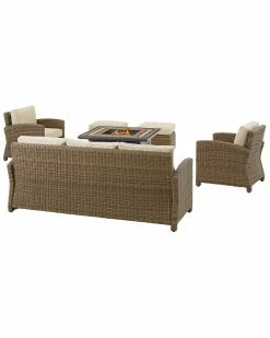 Crosley Bradenton 6Pc Outdoor Wicker Sofa Set W/Fire Table Home Seating