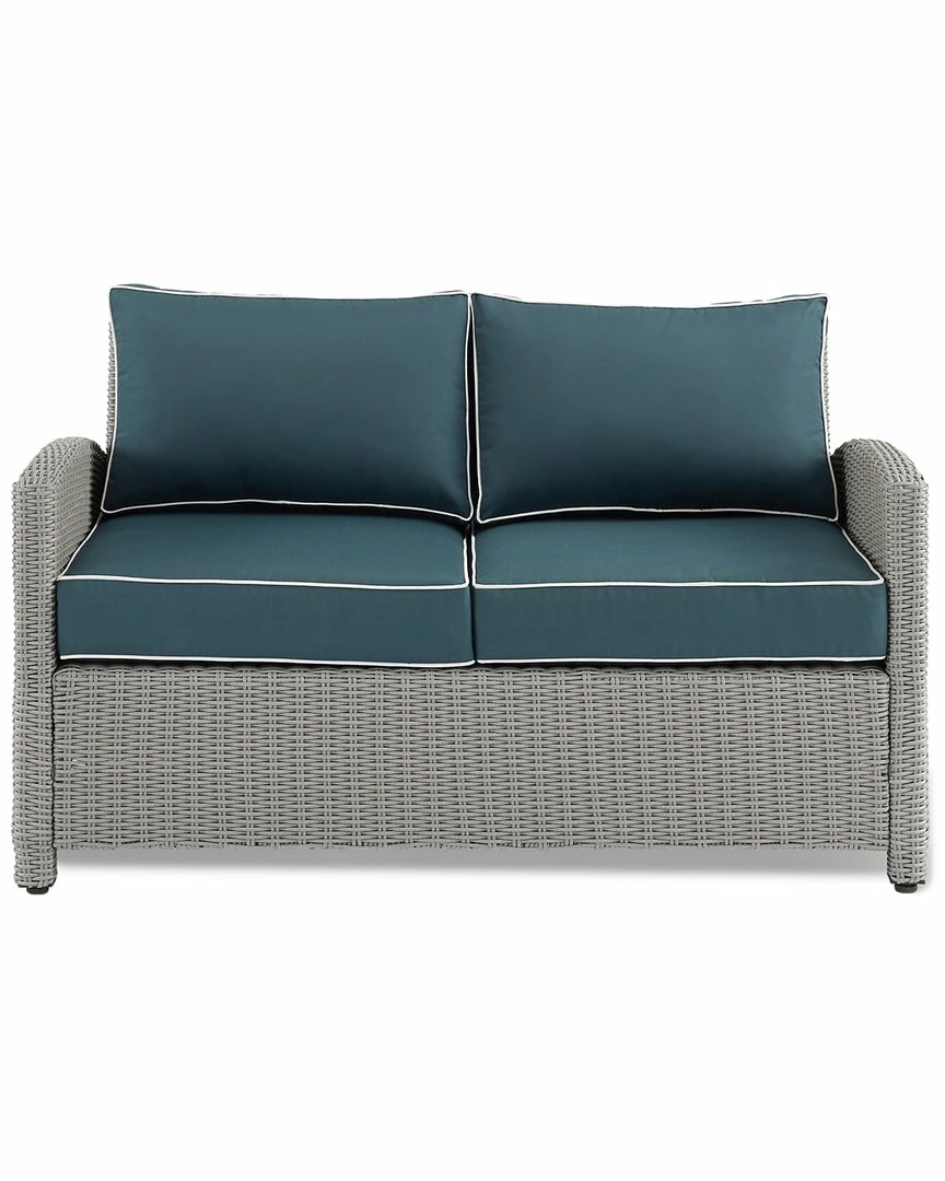 - Whether you are lounging solo or entertaining a group, the Bradenton Loveseat fits the bill. The sturdy steel frame is wrapped in beautiful all-weather wicker and topped with moisture-resistant cushions. With gently arched arms and deep seating, the Bradenton Loveseat is made for comfort without sacrificing style. Great on its own or paired with the rest of the Bradenton collection, this loveseat is a perfect addition to your outdoor retreat.