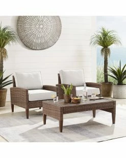 Crosley Capella Outdoor Wicker 3pc Chair Set Home Seating