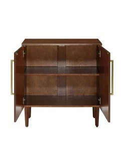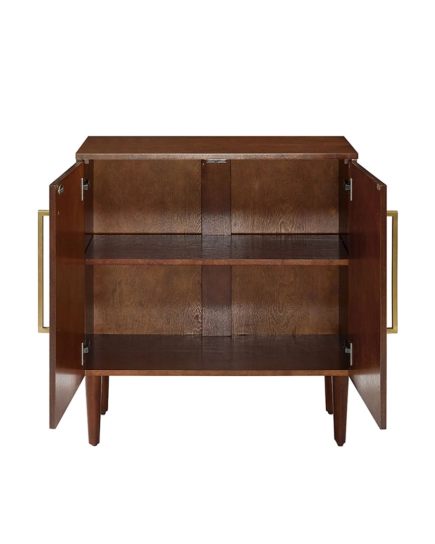 - Design details: The Everett Console Cabinet is the perfect solution to your small space storage needs. The mid-century modern design compliments the rest of the Everett collection or can stand alone to add a touch of classic design to your decor. Tucked behind the doors is one adjustable shelf for storage while the exterior features round tapered legs, genuine metal hardware and a hand rubbed mahogany finish. Place this in your foyer for a convenient, stylish entryway piece, use in a narrow hallway or slip into a small corner. The options are endless. ; Mid Century Modern Design; Constructed of Solid Hardwood & Wood Veneers; Hand Rubbed, Multi-Step Finish; Genuine Metal Hardware; One Adjustable Shelf for Interior Storage; Tapered Legs; Light Assembly Required