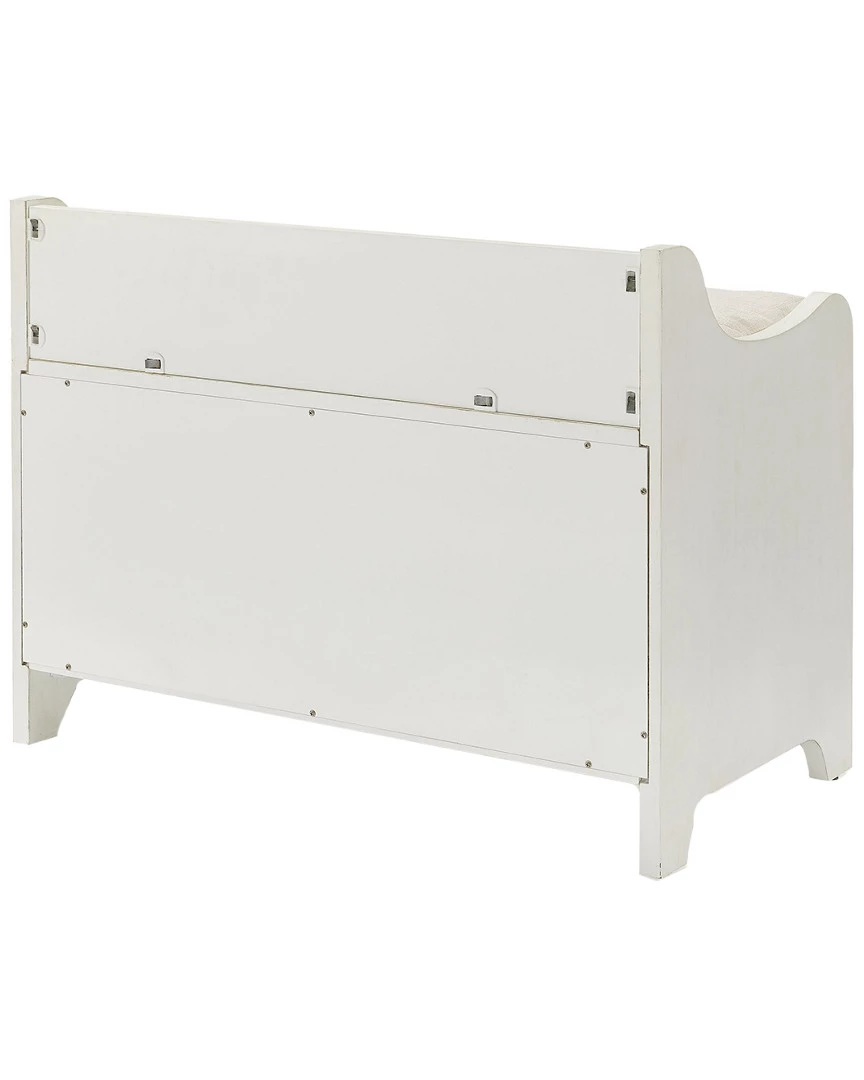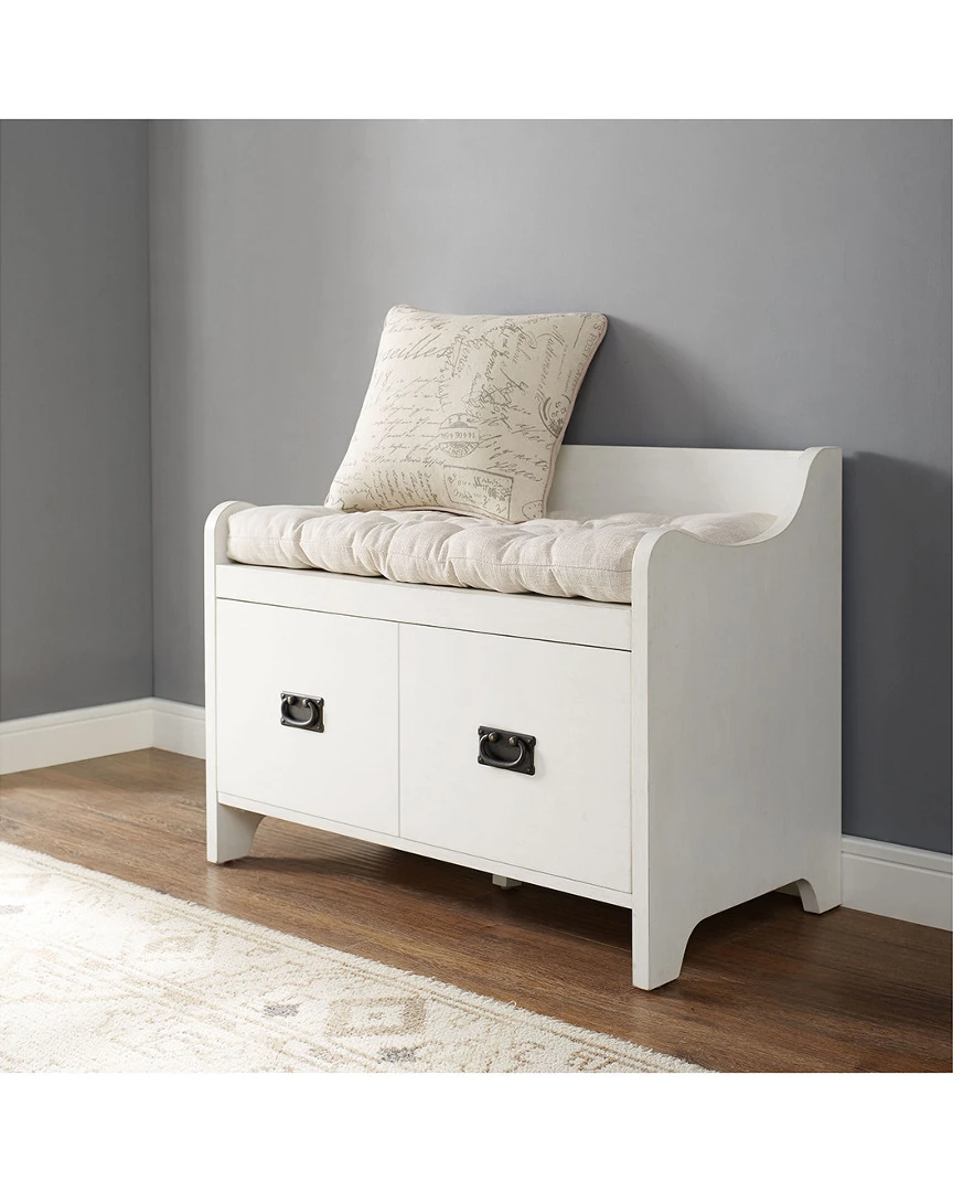 - Design details: The Freemont Bench adds extra seating and storage to your home. The two storage cubbies are easily accessible and accented with antique hardware. The bench is easily paired with the rest of the Freemont Collection; Antique Finish; Cushion Included; Two Easy Glide Storage Cubbies; Adjustable Middle Support Leg Leveler; Antique Brass Finish Hardware; Light Assembly Required; Tool-less Construction
