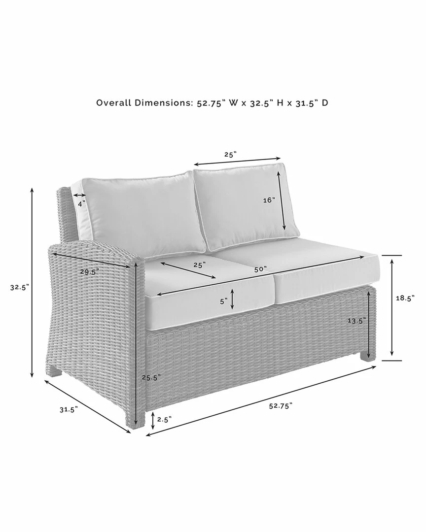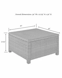 - Whether you are lounging solo or entertaining a group, the Bradenton 4pc Sectional Set fits the bill. The sturdy steel frame is wrapped in beautiful all-weather wicker and topped with moisture-resistant cushions, making this sectional set both durable and stylish. The Bradenton sectional provides the utmost flexibility and comfort with its modular design, gently arched arms, and deep seating. Add in the included glass-top coffee table and the Bradenton 4pc Sectional Set will make outdoor entertaining a breeze. Traditional design.UV resistant all-weather half-round resin wicker.Weather-resistant powder-coated steel frame.Handwoven weathered brown resin wicker.Gray cushion covers.Gray cushion covers.High-performance solution-dyed polyester cushion covers resist mildew, sun fade, and abrasion.High-performance solution-dyed polyester cushion covers resist mildew, sun fade, and abrasion.Moisture-resistant high grade cushion cores.Removable cushion covers are machine washable.5″ thick seat cushion and 4″ thick back cushion.Adjustable levelers on legs.Tempered glass tabletop.Clips for attaching sectional pieces are included.Modular seating for up to five.Modular design allows for a variety of seating configurations.Corner Chair Dimensions – 32.5″H x 31.5″W x 31.5″D.Square Coffee Table Dimensions – 17.75″H x 32″W x 32″D.Left/Right Loveseat Dimensions – 32.5″H x 52.75″W x 31.5″D.Right Loveseat Dimensions – 32.5″H x 52.75″W x 31.5″D