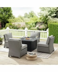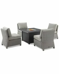 Crosley Furniture Bradenton 5Pc Outdoor Wicker Conversation Set W/Fire Table- Dante Fire Table & 4 Armless Chairs Home Seating