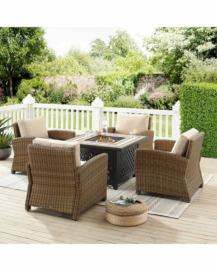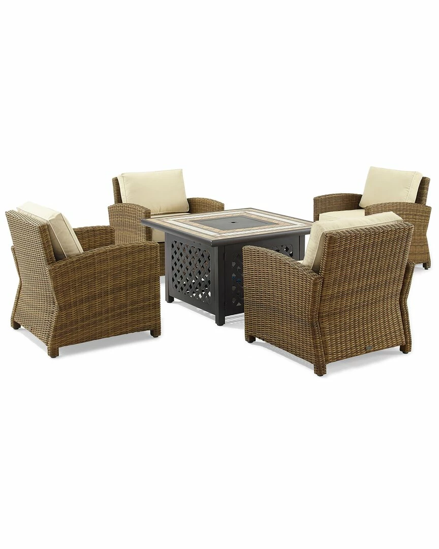 Crosley Furniture Bradenton 5Pc Outdoor Wicker Conversation Set W/Fire Table- Tucson Fire Table & 4 Armchairs Home Seating