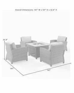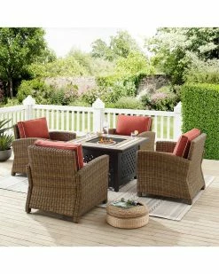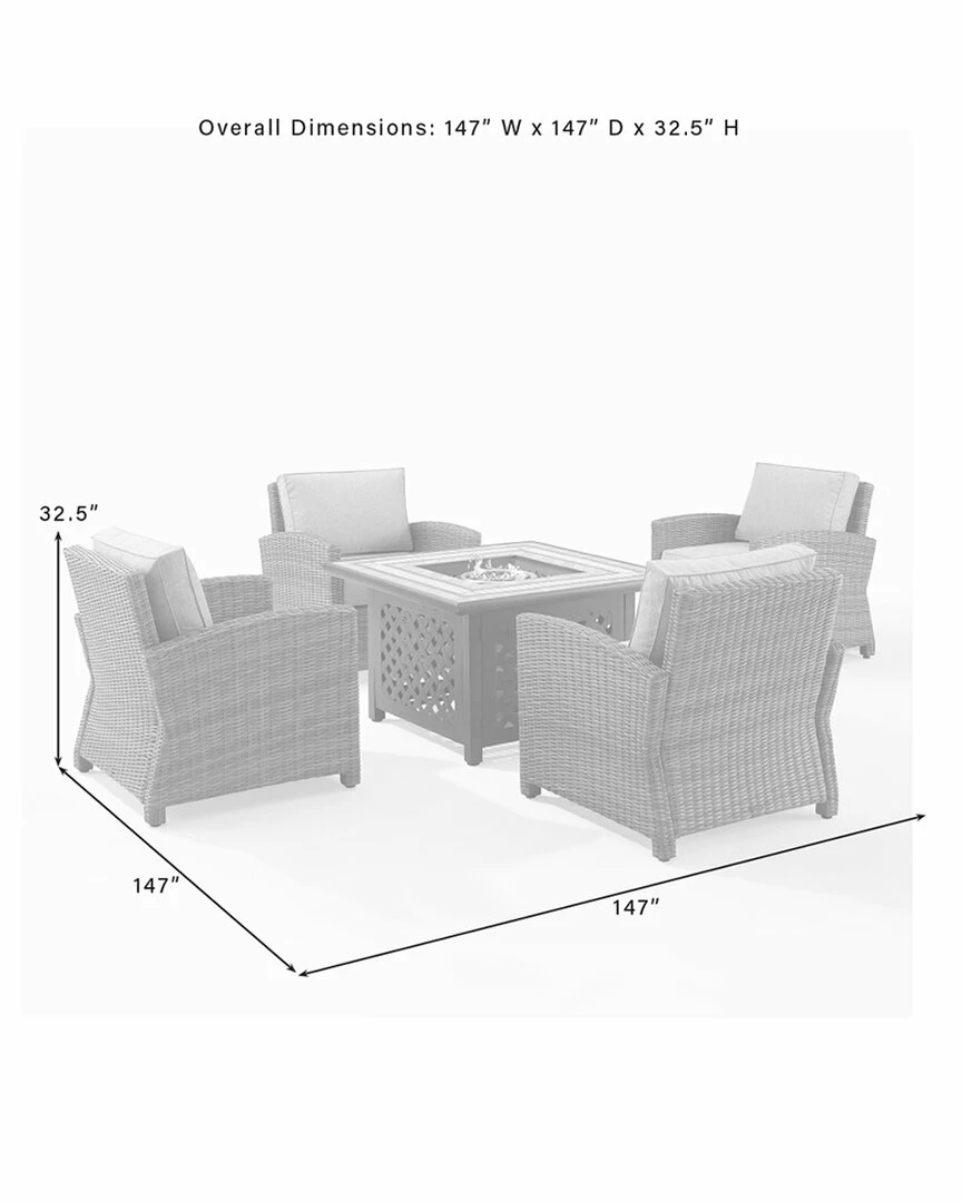 Crosley Furniture Bradenton 5Pc Outdoor Wicker Conversation Set W/Fire Table- Tucson Fire Table & 4 Armchairs Home Seating