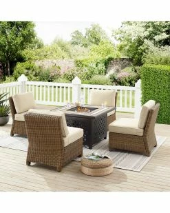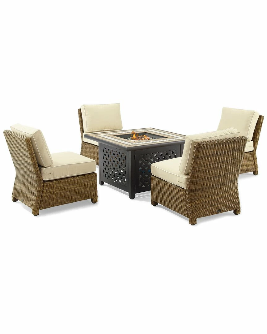 Crosley Furniture Bradenton 5Pc Outdoor Wicker Conversation Set W/Fire Table- Tucson Fire Table & 4 Armless Chairs Home Seating