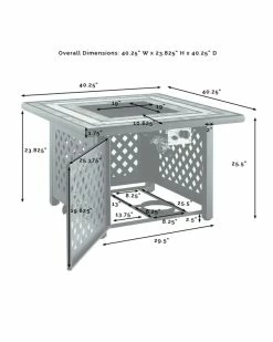 - Traditional design.UV resistant all-weather half-round resin wicker.Weather-resistant powder-coated steel frame.Handwoven weathered brown resin wicker.Deep sangria cushion covers with white piping.High-performance solution-dyed polyester cushion covers resist mildew, sun fade, and abrasion.Moisture-resistant high grade cushion cores.Removable cushion covers are machine washable.Fire table has a tiled stone top.Fire table gas controls and propane tank store inside table.Fire table comes with 10lbs of black glass fire beads.Fire table uses standard 20lb propane tank – Not Included.Fire table comes with a lid and protective covers for the table and propane tank (Propane tank not included).One AAA battery required, not included.Seating for four.Fire Table Dimensions – 40.25″W x 40.25″D x 25.5″H.Armless Chair Dimensions: 32.5″H x 25″W x 31.5″D…