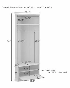 - Measures 74in high x 33.13in wide x 23.63in deepin