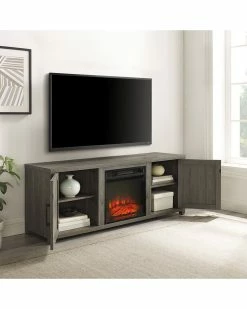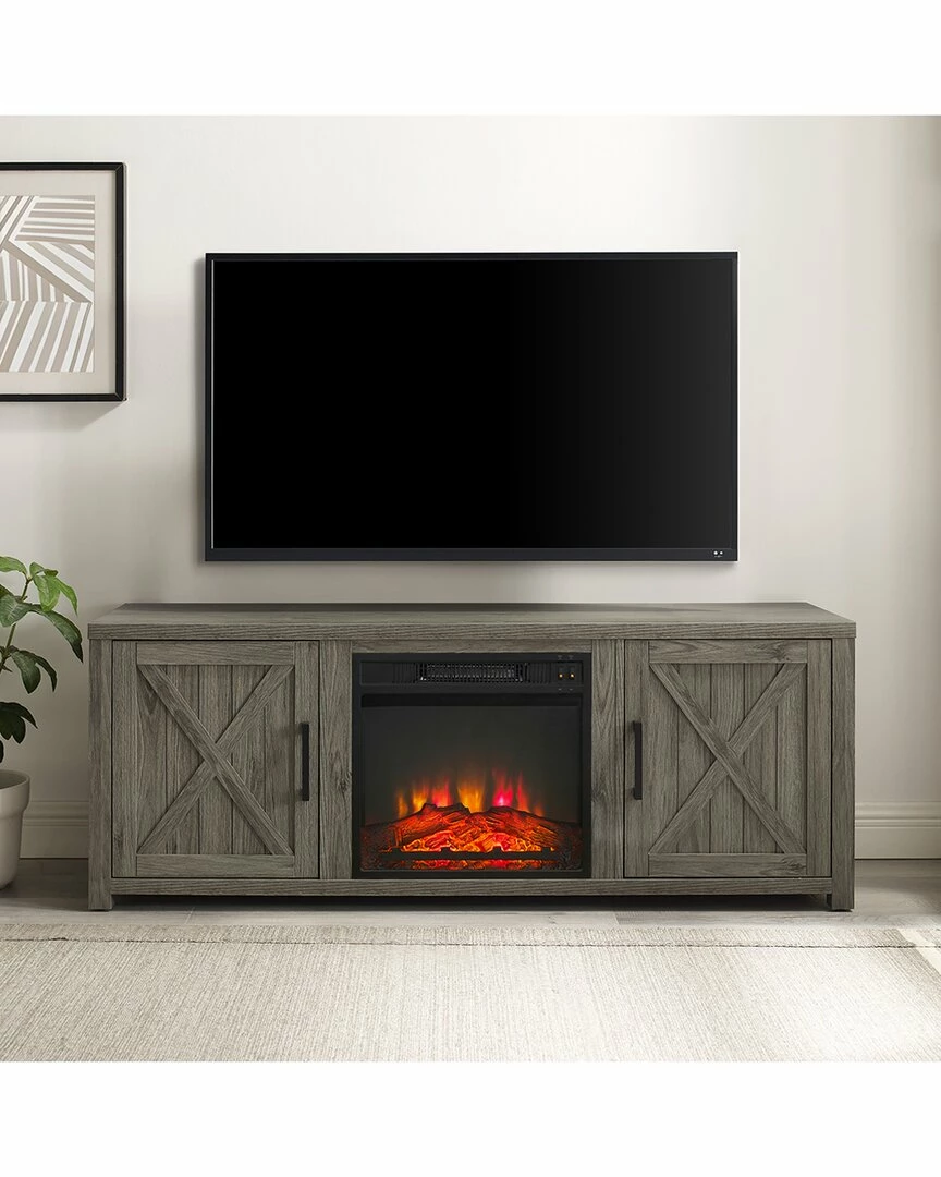 - Ever-trending modern farmhouse design meets functional home entertainment with the Gordon 58 Low-Profile TV Stand with Fireplace. Echoing the rustic charm of a classic barn door, the cabinet doors feature a slatted look with an x-motif. The cabinets offer adjustable shelving for flexibility, while the center section showcases an electric fireplace for keeping cozy. Ideal for TVs up to 65, the Gordon TV Stand will make a beautiful focal point in any room.