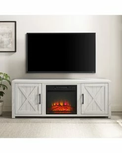 - Ever-trending modern farmhouse design meets functional home entertainment with the Gordon 58 Low-Profile TV Stand with Fireplace. Echoing the rustic charm of a classic barn door, the cabinet doors feature a slatted look with an x-motif. The cabinets offer adjustable shelving for flexibility, while the center section showcases an electric fireplace for keeping cozy. Ideal for TVs up to 65, the Gordon TV Stand will make a beautiful focal point in any room.