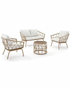Crosley Furniture Juniper 4Pc Outdoor Wicker Conversation Set Home Seating