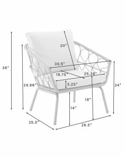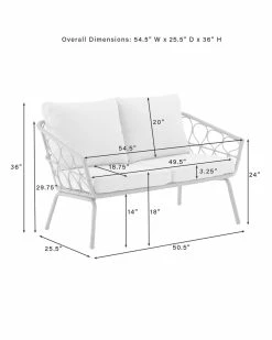 - Turn your patio into a breezy bohemian retreat with the Juniper 4pc Conversation Set. Crafted from rattan-styled resin wicker, this set showcases delicate woven loops over steel frames. With lush, moisture-resistant cushions on the loveseat and chairs, plus a chic round coffee table, the Juniper conversation set will be a hit at your next outdoor soiree. Bohemian design.Weather-resistant powder-coated steel frame.Handwoven rattan-style resin wicker in a natural finish.Creme cushion covers.High-performance solution-dyed polyester cushion covers resist mildew, sun fade, and abrasion.Moisture-resistant high grade cushion cores.Delicate loop design.Loveseat and chairs have a classic barrel silhouette.Round drum-shaped coffee table.Seating for up to four.Table weight limit is 100lbs.Loveseat Dimensions: 54.5″W x 25.5″D x 36″H / 27.99lbs.Chair Dimensions: 30.5″W x 25.5″D x 36″H / 18.15lbs.Coffee Table Dimensions: 22.75″W x 22.75″D x 18″H / 15.65lbs……