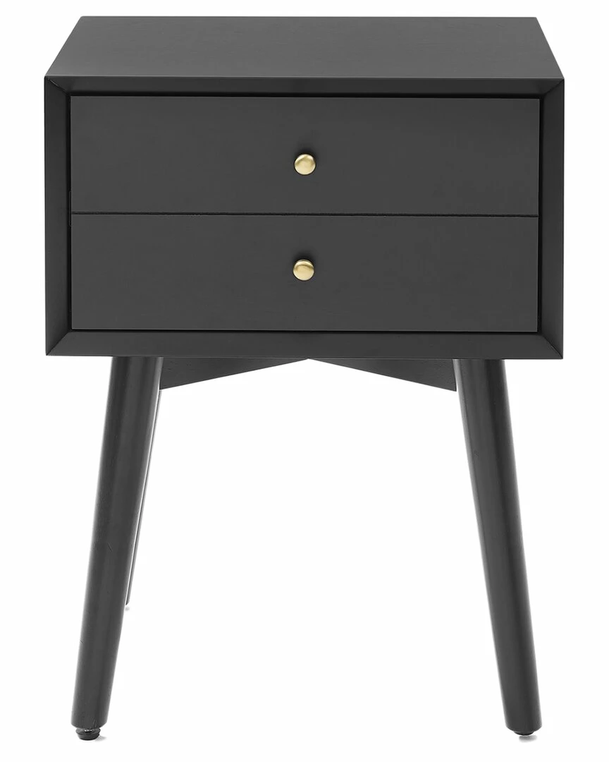 - Add a touch of mid-century inspired design to your bedroom with the Landon Nightstand. Classic metal hardware and tapered legs add a distinctive vintage touch, while the deep storage drawer keeps the nightstand clear of clutter. The Landon Nightstand is perfect for staying organized with a streamlined style. Mid-century modern design.Matte black finish.Genuine metal hardware with an antique gold finish.Tapered legs.Large storage drawer with a faux double drawer front has a weight limit of 15lbs.Pairs well with modern, farmhouse, and rustic decor.Table weight limit is 25lbs………….