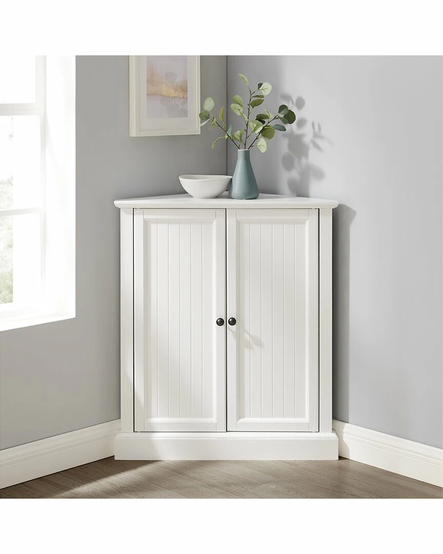 - The Shoreline Stackable Corner Pantry provides space-saving organization with a dash of coastal flair. Featuring an adjustable shelf and charming beadboard details on the doors, this accent cabinet is designed to tuck neatly into any corner. Ideal for smaller rooms, the Shoreline Stackable Pantry is great on its own or can be stacked with a second one, doubling your storage without eating up valuable floor space. Coastal design.White finish.Genuine metal hardware with a bronze finish.Beadboard paneling on doors.Cabinet doors have magnetic closures.One adjustable and removable shelf with a 15lb weight limit.Includes metal plate for stacking two units together.Second unit for stacking is sold separately.Can be used in a bathroom, home office, or kitchen.Pairs well with traditional and farmhouse decor……….
