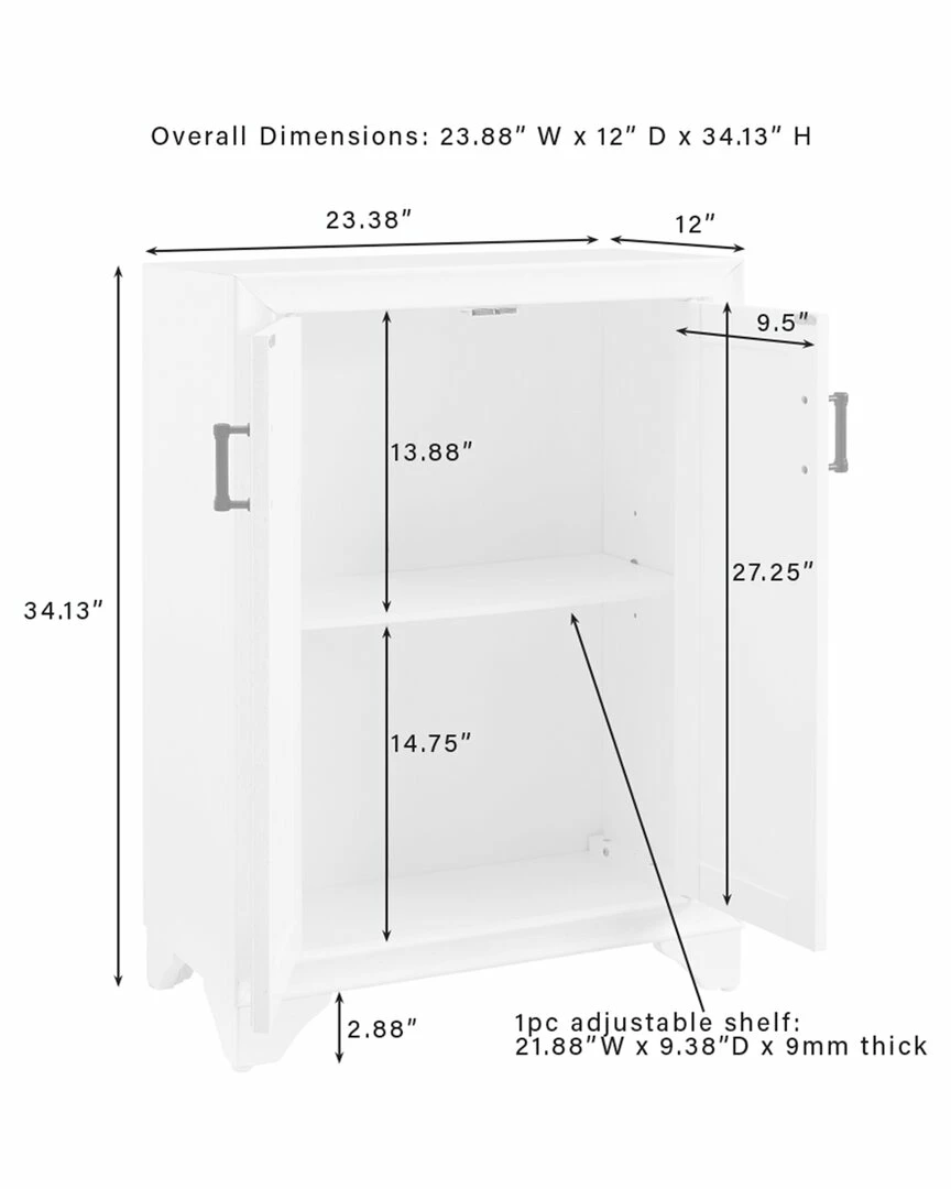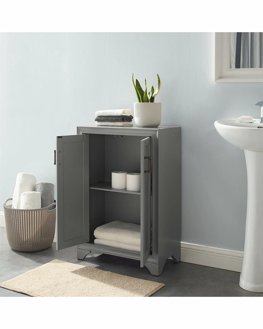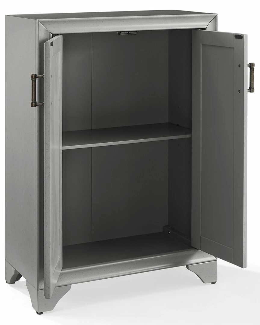 - Bring classic charm to any room of the home with the Tara Accent Cabinet. Featuring a beautifully distressed finish and traditional design elements, this cabinet will blend with a variety of home decor. Featuring an adjustable shelf that adapts to your needs, you can use this item as a small pantry, entryway storage, or bathroom cabinet. Great for smaller spaces, the Tara Accent Cabinet is the home organization tool youve been looking for.