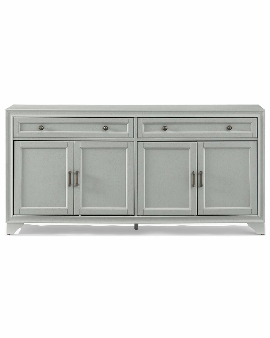 - Whether you love a traditional look or a modern farmhouse vibe, the Tara Sideboard fits the bill. Featuring two wide full-extension drawers and two large cabinets with adjustable shelves, this sideboard offers high-end home organization. Use the Tara Sideboard as a buffet for your dining room, a TV stand for your living room, or a console for your home office. Modern farmhouse design.Distressed gray finish.Genuine metal hardware in a distressed brass finish.Two large cabinets with double doors and magnetic closures.Adjustable shelf inside each cabinet with a 15lb weight limit per shelf.Two full-extension drawers on ball-bearing glides, each with a 15lb weight limit.Fits most TV’s up to 65″.Modular design allows multiple units to be paired together.Pairs well with traditional decor.Sideboard top has a weight limit of 100lbs……….