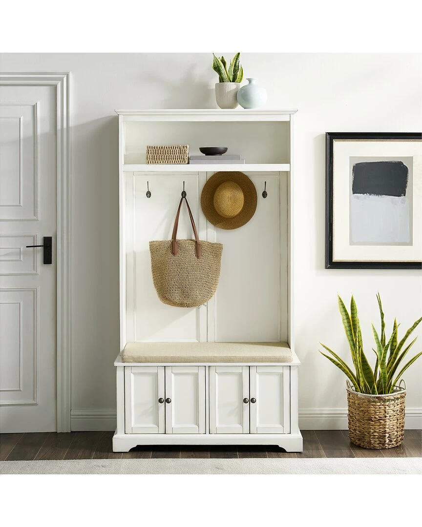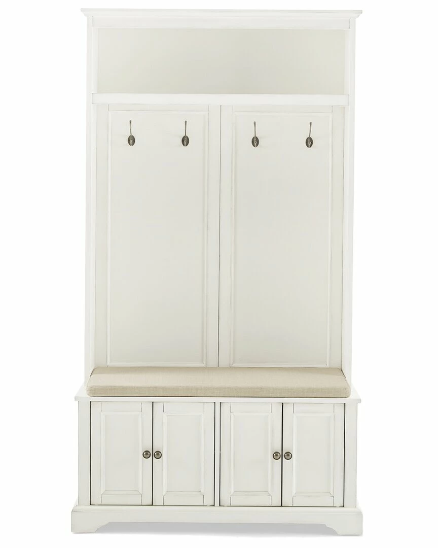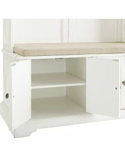 - The Holbrook Hall Tree brings vintage charm to any entryway. Featuring a sizable bench and two storage cabinets with adjustable shelves, you can easily sit down and tuck away your shoes at the end of the day. The open stationary shelf corrals smaller items while the four double prong hooks keep coats and hats accessible. Whether you are coming or going, the Holbrook Hall Tree keeps all your everyday items close at hand.