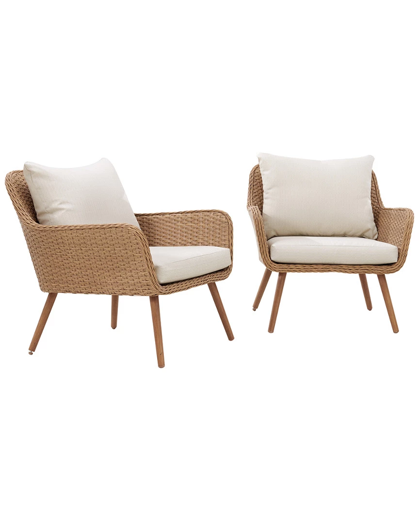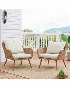 - Design details: Inspired by mid-century modern design, the Landon 2pc Outdoor Wicker Chair Set brings classic charm to your outdoor living space. Combining style and comfort, the chairs feature curved backs and arms with deep cushioned seats. Be ready to kick back and relax for the summer with the Landon 2pc Wicker Chair Set.
