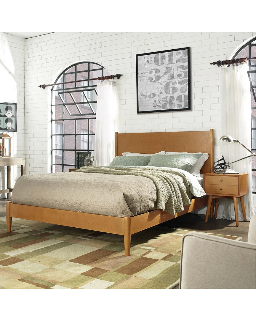 - Design details: Give your bedroom a modern, mid-century feel with the Landon bedset. The hardwood frame hints at subtle refinement, without overpowering your current decor. Easy to assemble, with a sturdy roll out slats. Available in Queen or King sizes; Mid Century Modern Design; Available in Queen or King Bedset; Hardwood Headboard; Sturdy Frame Construction; Acorn Colored Hardwood Frame; Mattress, Box Spring, Adjustable Frame and Bedding Not Included; Simple and Elegant Design; Light Assembly Required