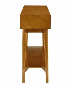 - Design details: Add some swanky style to your home with the Landon Console Table. This mid-century inspired design is accented with genuine metal hardware and the solid hardwood is finished in warm acorn. This piece is perfect for storing away odds and ends within the two full-extension, pullout drawers, and for displaying collectibles and decor on the planked shelf. This table is a stylish addition to your entryway, living room, or bedroom; Mid Century Modern Design; Acorn Finish; Two Pullout Drawers for Storage; Genuine Metal Hardware; Full Extension Glides; Bottom shelf for storage and decor; Black Adjustable levelers; Light Assembly Required; Light Assembly Required