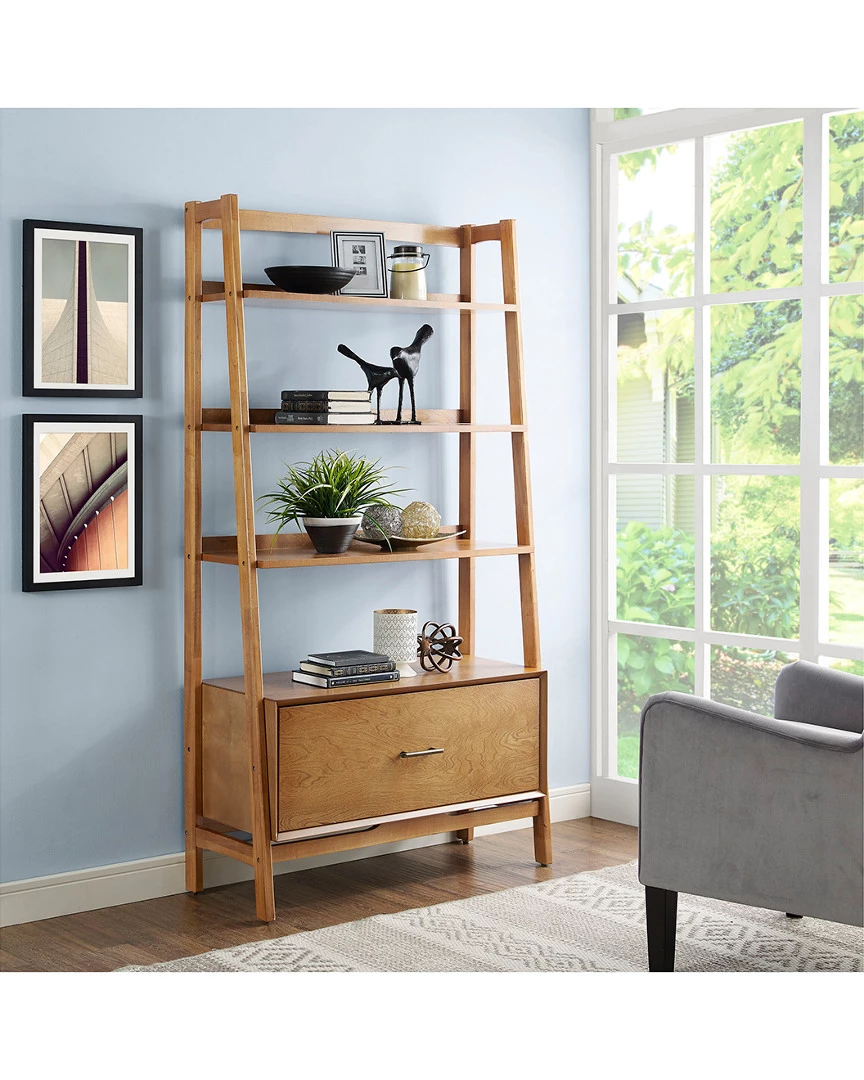 - The Landon Large Etagere brings simplicity and style to any home. Taking cues from mid-century modern design, this etagere features a sturdy wood frame with three open shelves and a spacious office style drawer that is seated on full extension glides to give access to every corner. Ideal for books and other decor, the Landon Large Etagere delivers classic home organization with modern flair.