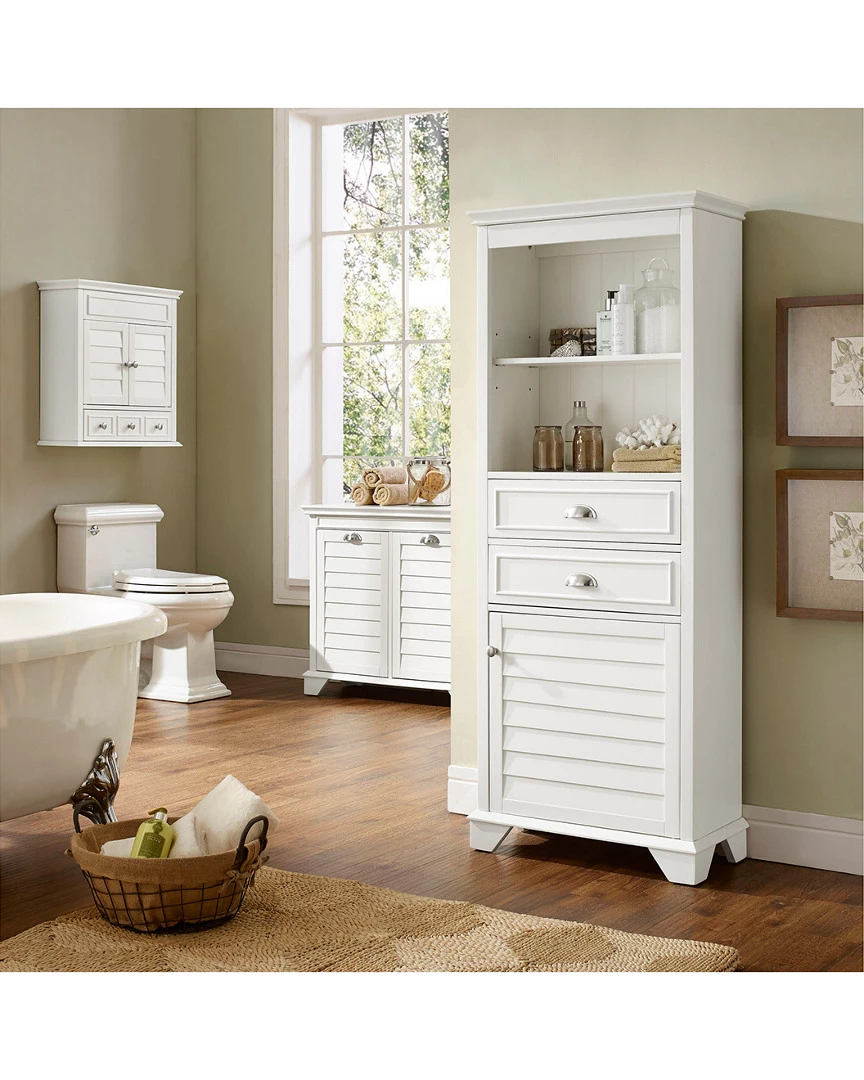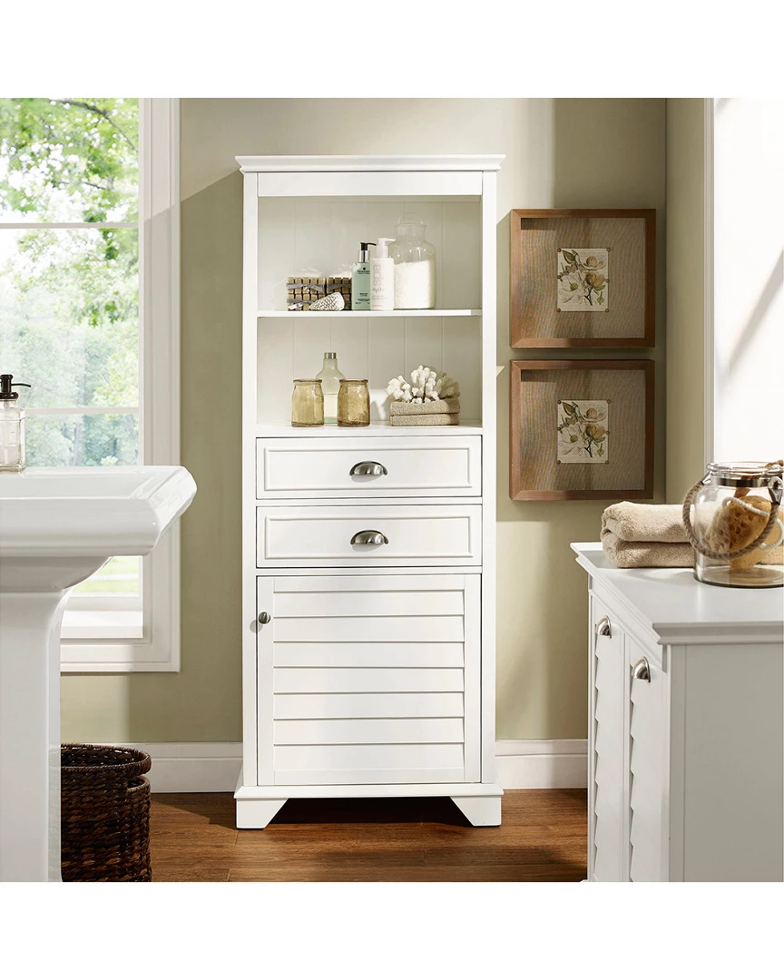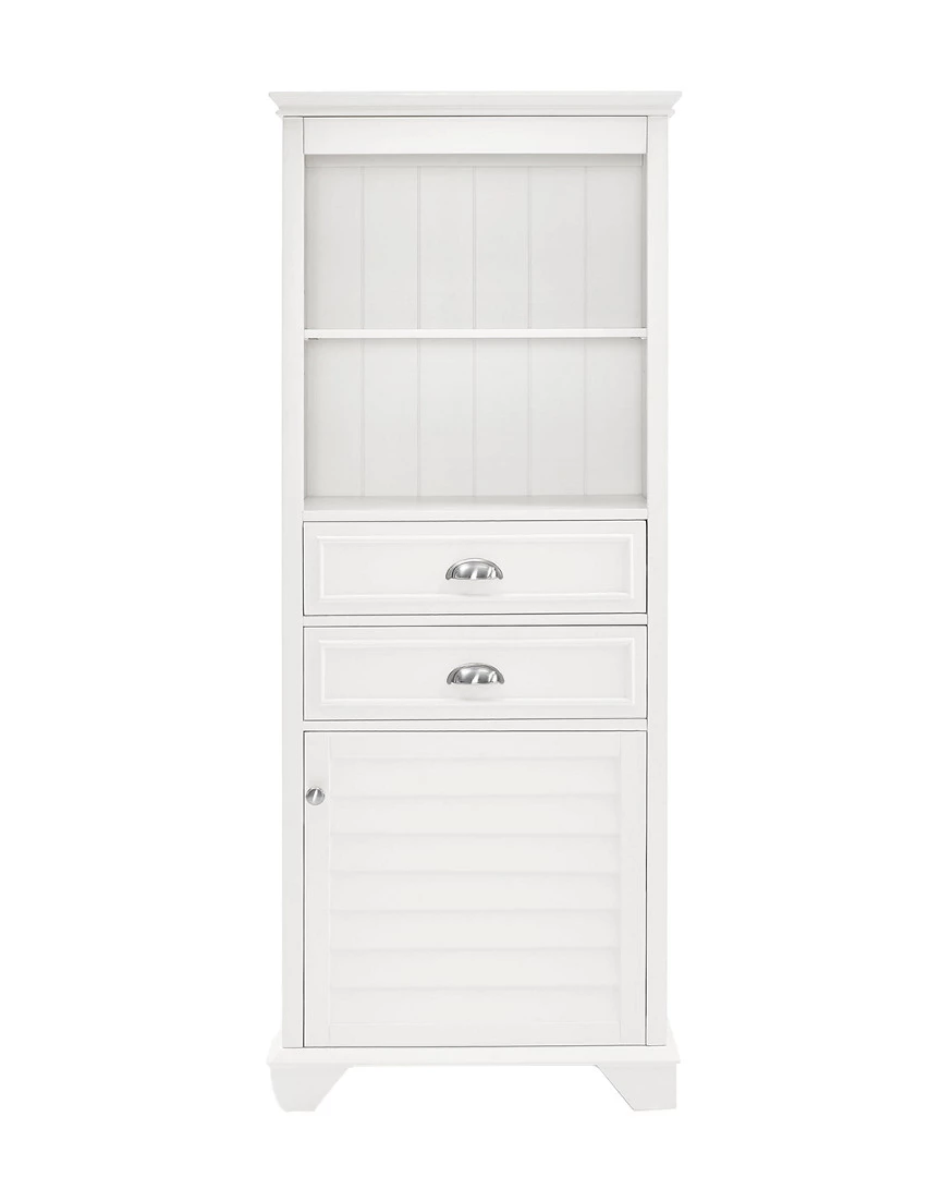 - Design details: Bring order to your chaos with the Lydia Tall Cabinet. This tall cabinet was conceived to maximize storage space, in a style that embraces a classic cottage aesthetic. Featuring open shelving with beadboard detailing and two spacious drawers, this cabinet offers a variety of storage options. The large cabinet at the base of the unit features an adjustable shelf and a stylish louvered design on the door. The Lydia Tall Cabinet has everything you need to craft a tidy and organized living space.