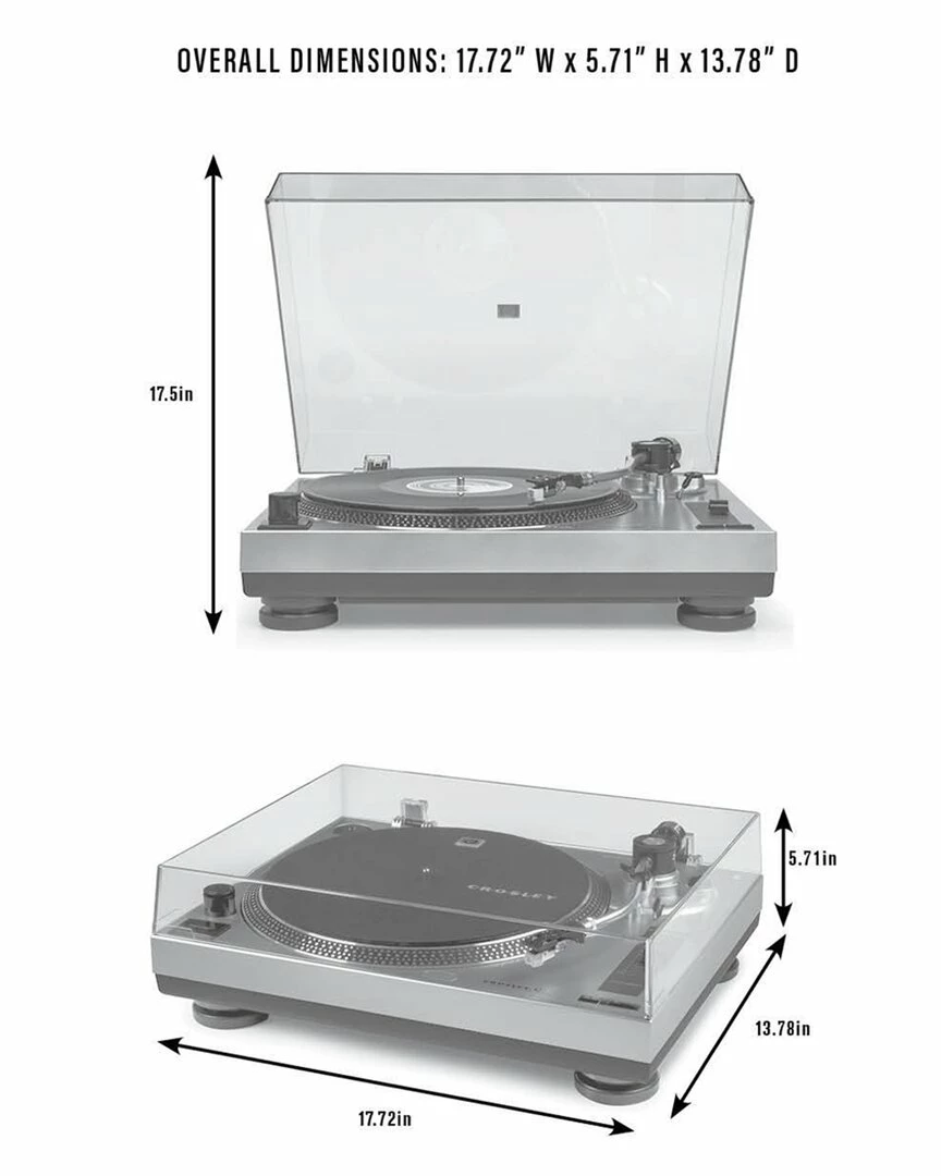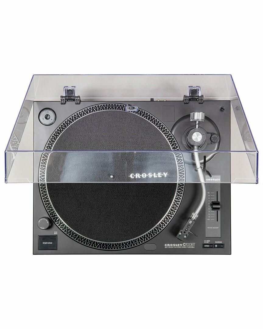 - Design details: ready to get more out of your vinyl? take a turn with the new crosley c100bt, the perfect turntable for the daily vinyl listener whos ready to upgrade their listening experience. aspiring audiophiles will immediately notice the outstanding clarity of the high-performance audio-technica at95e cartridge. the adjustable counterweight and smooth s-shaped curve of the aluminum tonearm will get you in the groove with ease, and the low-vibration synchronous motor and vibration control feet ensure smooth play every single time. keep your records pristine and dust-free with the clear plastic cover (and its easily removable if thats your thing). you can easily connect to your favorite wireless speaker with the bluetooth out function or use the switchable built-in preamp to plug into any stereo or powered speaker system. no matter which option you choose, just prepare to be blown away by the sound of the c100bt.