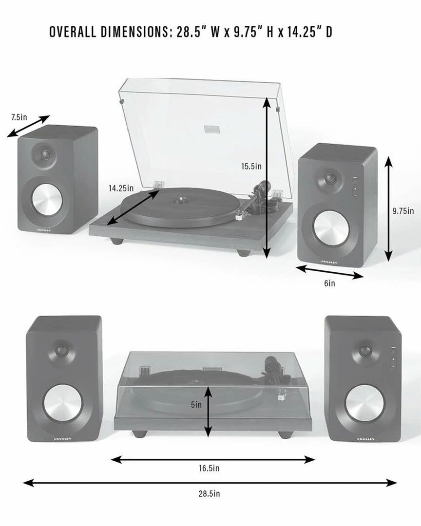 - Design details: the crosley c6 is a fully manual two-speed turntable created to give music fans a true analog experience. an audio-grade mdf plinth is wrapped in veneer to suit your style, and since weight helps keep vibration at bay, a heavy steel platter provides a solid seat for your vinyl during play. housed underneath the platter, a low vibration synchronous motor connected via belt spins records at both 33 1/3 and 45 rpms – simply move the belt from one groove to another to change speeds. dial in the tracking force with the adjustable tonearm counterweight and then use the cueing lever to gently drop the needle on the record to fill the room with the warm sound of vinyl. the c6 comes with a moving magnet cartridge preinstalled, but uses a standard mount so you can upgrade as your vinyl collection grows. connect the included s100 speakers, which include a built-in 30 watt power amp and bluetooth connectivity, and crank it up!