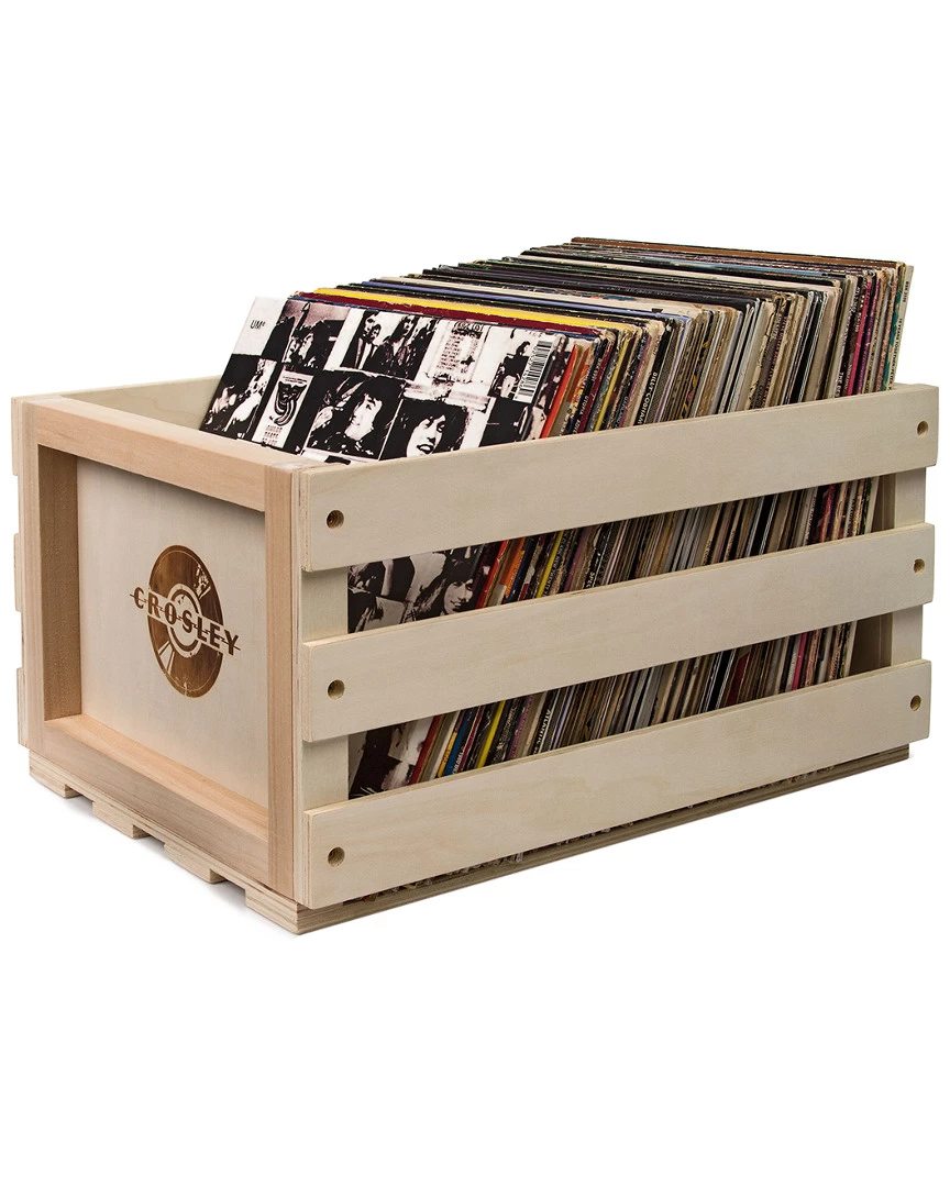 - Design details: Go crate-digging through your own collection with Crosley’s rustic wooden record crate. Fire-branded with the iconic Crosley logo, this lightweight crate gives plenty of room to fill it with precious LPs.