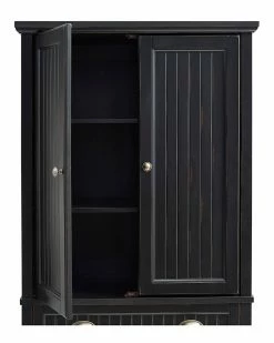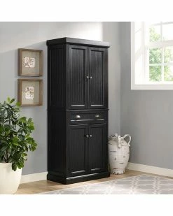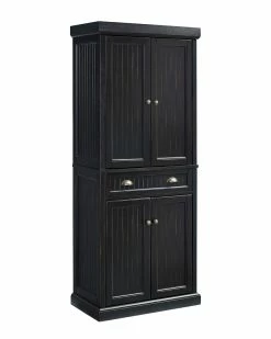 - Design details: Capture the feeling of an effortless beach home with the Seaside Pantry from Crosley. Constructed from solid hardwood and veneers, the weathered surface softens the classical lines and suits any home. A deep, easy-gliding drawer separates two large cabinets with magnetic closure doors and adjustable shelving inside. With genuine metal hardware and slatted details, kitchen clutter can be kept at bay in one handsome pantry; Coastal Design; Solid Wood Top with Distressed Black Finish; Constructed of Solid Hardwood & Wood Veneers; Classic Designs Featuring Beadboard Panels; Two Large Cabinets with Adjustable Shelves; Deep Storage Drawer; Genuine Metal Hardware; Light Assembly Required