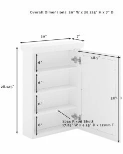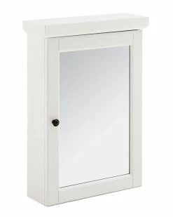 - Design details: The traditional medicine cabinet gets an upgrade with the Seaside Mirrored Wall Cabinet. This cabinet features three stationary shelves, sized perfectly for small bath items and toiletries, while the mirrored cabinet door keeps clutter neatly hidden. Simple crown molding and genuine metal hardware make the Seaside Mirrored Wall Cabinet a lovely addition to your bathroom space.