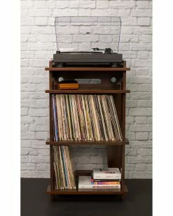 - Design details: The Soho by Crosley is the music lover’s ultimate turntable stand. The top shelf fits most component-style turntables and features two cable management holes to keep your set up tidy. The second shelf is perfect for your accessories: preamp, mini amp, cleaning supplies, etc. and features two more cable management holes. The bottom two shelves can hold up to 100 records each and feature bumpers in the back to ensure that the records sit uniform and are easily accessible. Because details matter, there are three different grooves to display the jacket of the record thats spinning, a headphone hook on the side and space under the bottom shelf to keep your records away from the true enemy: dirt and dust. Were confident that the Soho Turntable Stand is the most thoughtful and affordable solution on the market.