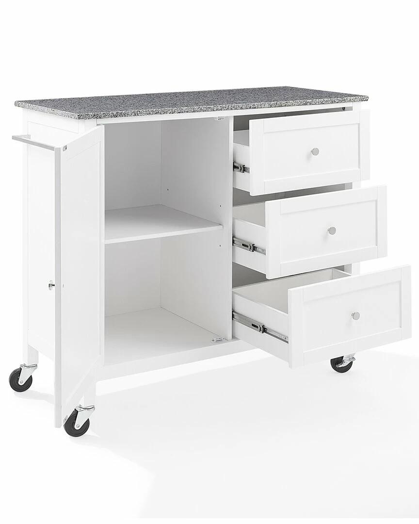 - Expand your kitchen storage in style with the Soren Kitchen Island/Cart. Featuring a large cabinet with an adjustable shelf, plus three full-extension drawers, this kitchen island holds everything from cookware and utensils to small appliances and linens. Showcasing shaker-style cabinetry and a beautiful granite countertop, your kitchen workspace will be the envy of the neighbors. With optional caster wheels, this kitchen essential can be used as a stationary island or mobile kitchen cart.