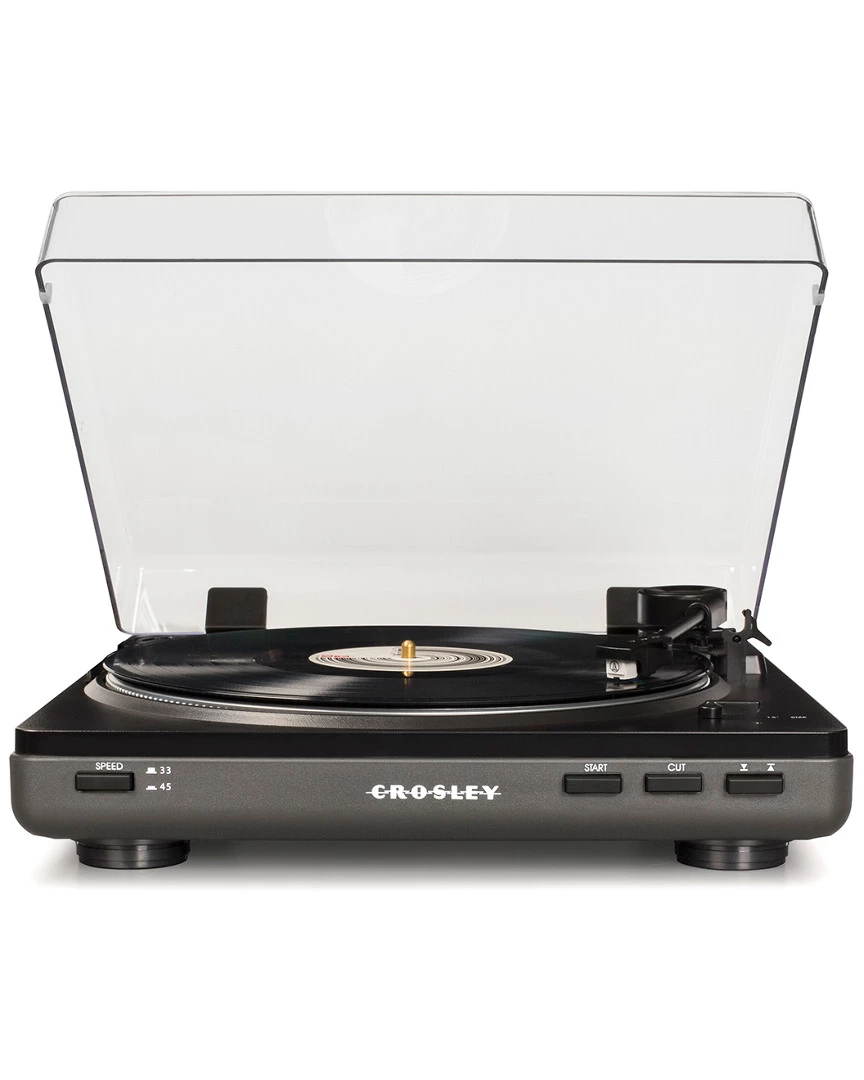 - Design details: If youre new to vinyl or just looking to simplify your vinyl listening experience, the Crosley T400 Two-Speed Turntable offers fully automatic functionality that takes the guess work out of playing your favorite 33 1/3 and 45 RPM records. Simply place on an album, hit the start button and watch the needle gently drop on the opening track every single time. When the side of the album is finished, the tonearm will even return to its cradle automatically. Easy, right? Heck yeah! Change speeds, start/stop, and raise/lower the tonearm with the four intuitive buttons on the front. Want to play your singles? Just flip the switch from 12 to 7, use the included 45 adapter (if applicable) and hit start. RCA outputs and a switchable preamp make hooking up to a receiver or speakers a breeze. Getting into vinyl has never been easier thanks to the Crosley T400.