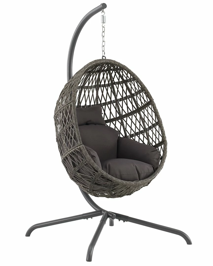 - Indulge in the cozy bohemian style of the Tess Hanging Egg Chair. With all-weather rattan wicker over a steel frame, this chair is great both indoors or outside. Featuring a tufted cushion and durable steel stand, the Tess Hanging Egg Chair is a perfect hideaway for relaxation.
