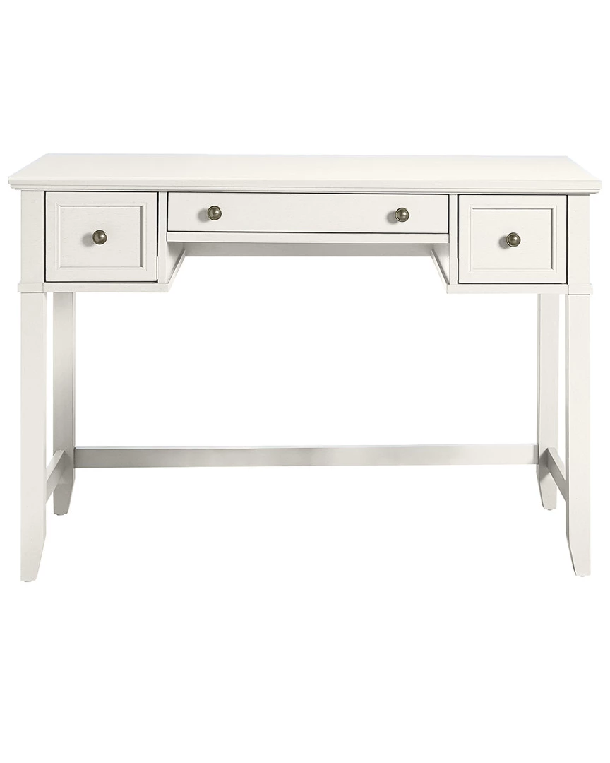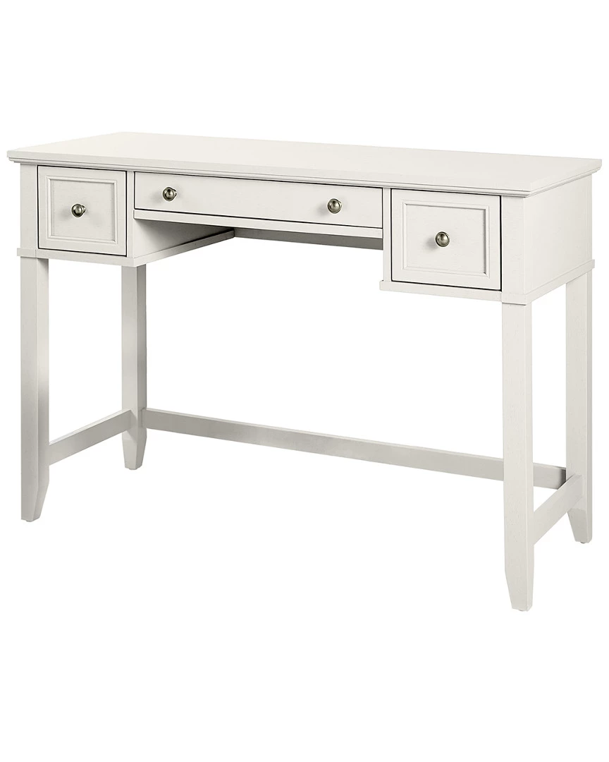 - Simple and traditional, the classic silhouette of the Vista collection complements any decor. Sit at the expansive countertop, which is useful as a desk or makeup vanity. The three easy-gliding drawers provide ample storage.